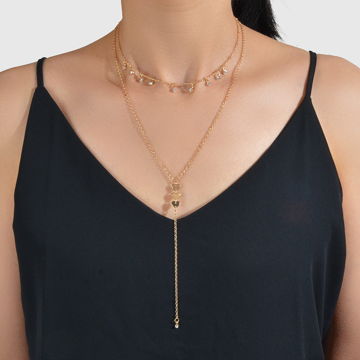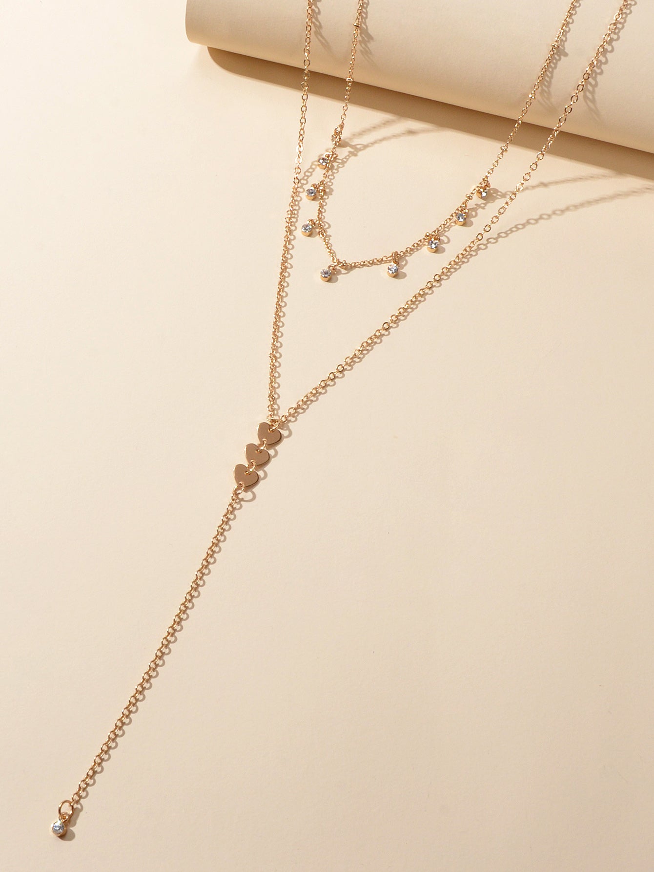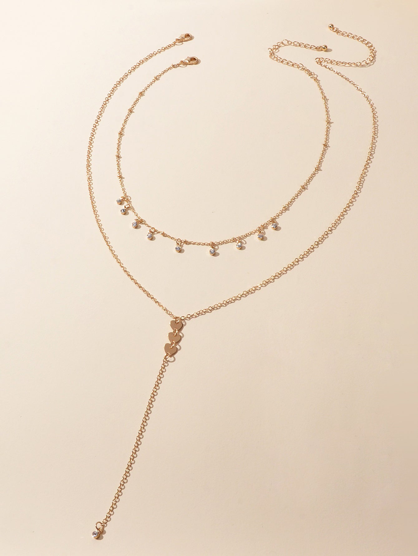 2pcs Designer Jewellery Rhinestone Charm Necklace Heart Y shape Pendant Necklace
