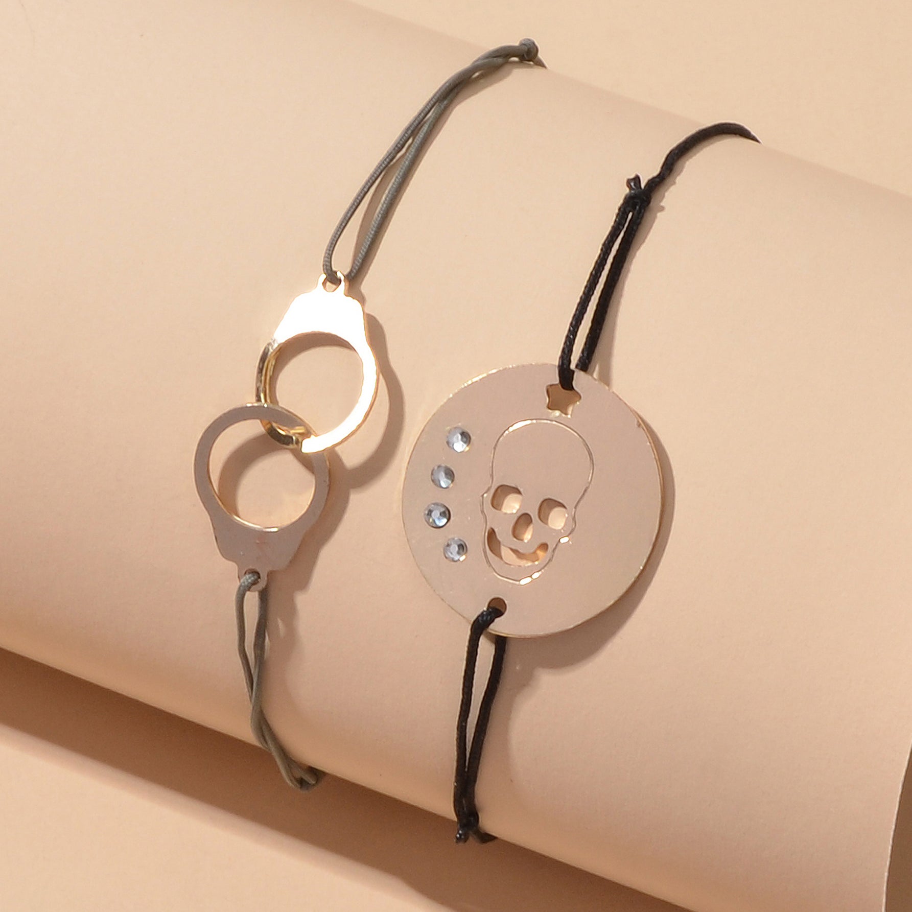 2pcs Goth Punk Hip Hop Elastic Rope Skull Handcuffs Charm Pirate Bracelet Bangle