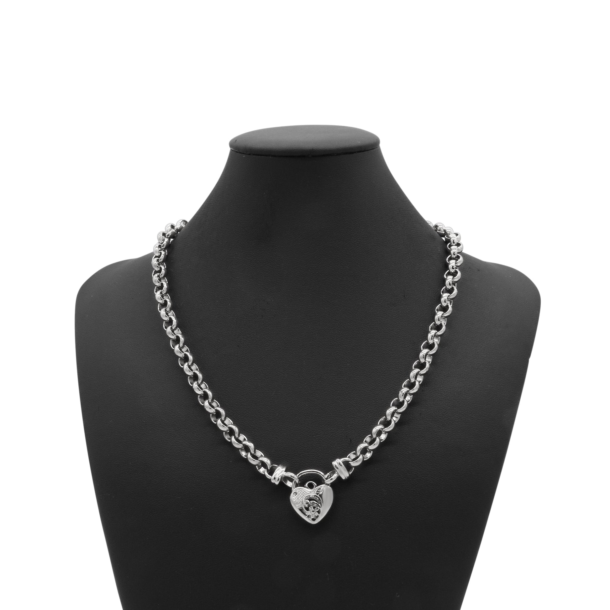 925 Sterling Silver Plated 6mm Belcher Chain Necklace with a Vegas Heart Locket - USA Made
