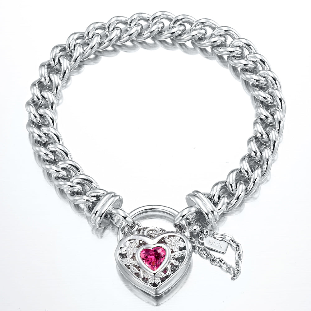925 Sterling Silver Plated Euro Chain Bracelet with a Pink Filigree Locket - USA Made