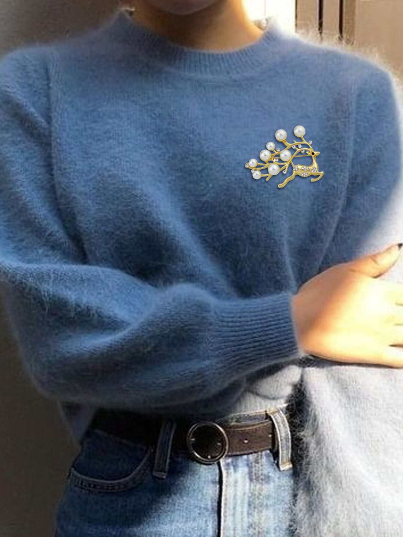 Christmas Pearl Rhinestone Gold Reindeer Brooch Deer Lapel Pin Dress Accessories
