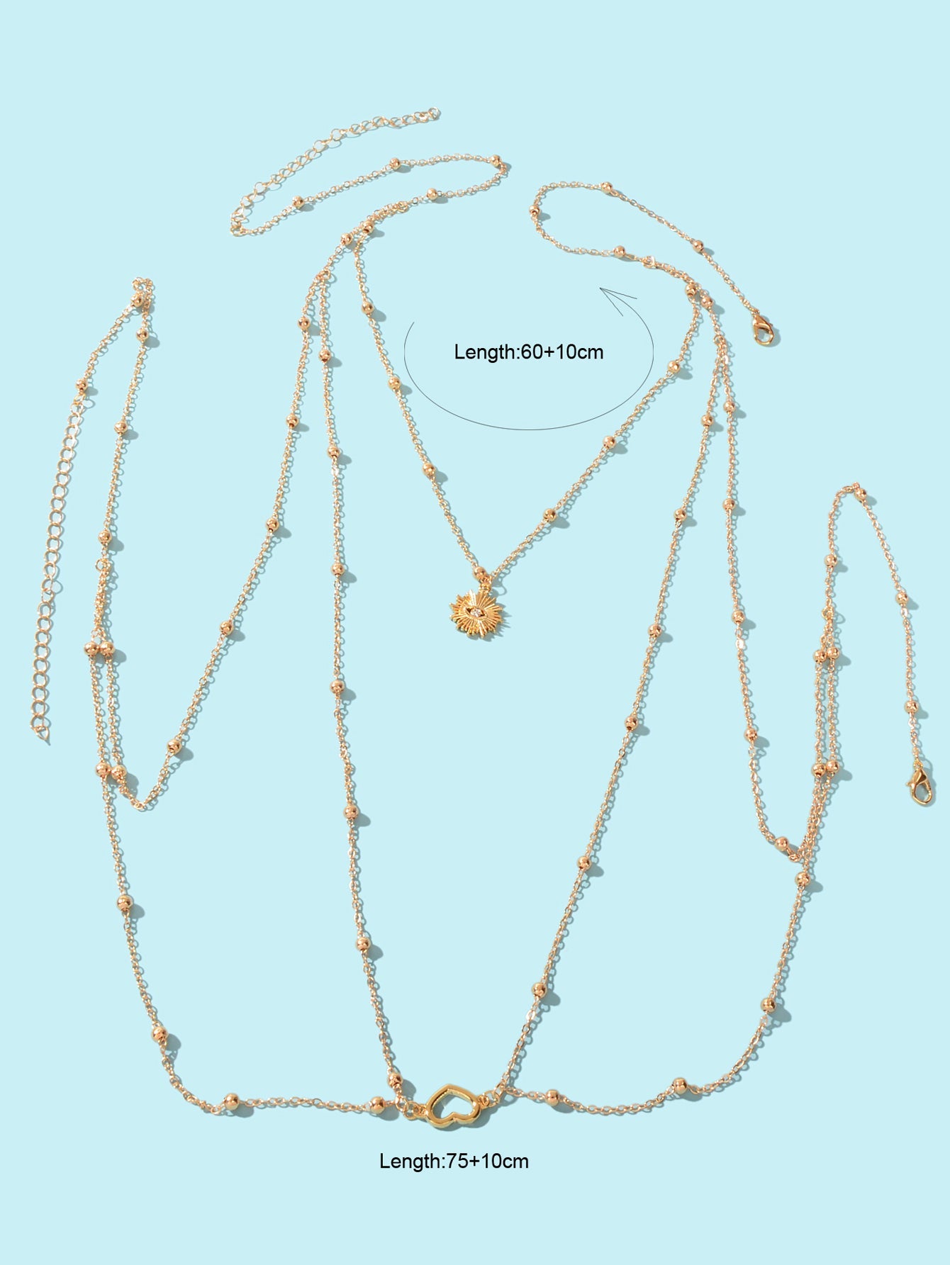 Gold Layered Body Chain Eye Heart Charm Crossover Bra Bikini Beach Body Jewelry
